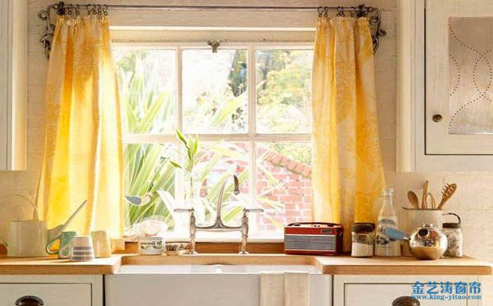 半簾,顧名思義只遮一半的窗簾,有的遮上半窗,有的遮下半窗,這個可以根據廚房的情況而定,并且還可以起到裝飾的作用。