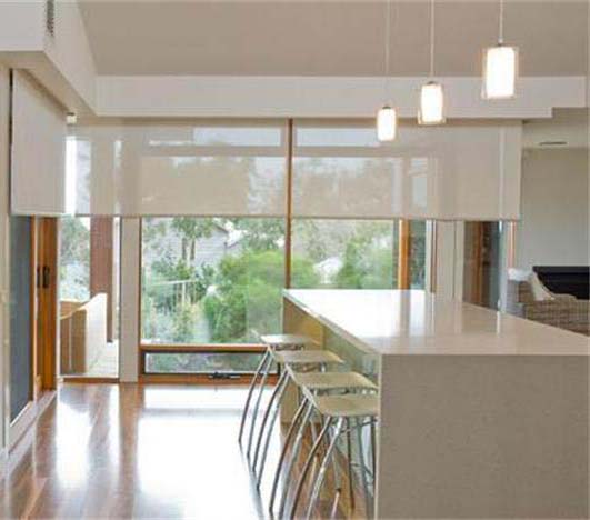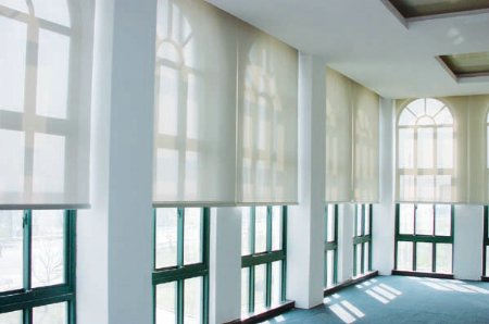 半遮光卷簾:透光不透景是它最大的特點,適合一 般辦公場所,能與周圍的良好環境得到溝通。可遮檔目光,看不見室內外人物景象,但有光線較暗。