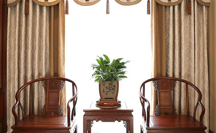 顏色仍然體現著中式的古樸,中式風格窗簾這種表現使整個空間,傳統中透著現代,現代中揉著古典。