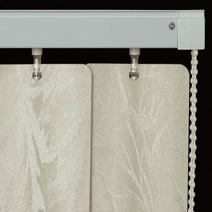 ③ 鋁合金簾片。鋁百葉垂直簾采用89mm鋁合金葉片,表面具有金屬光澤,耐磨,不老化,易于清潔,不過缺點重量較重,開合會產生少許噪音。