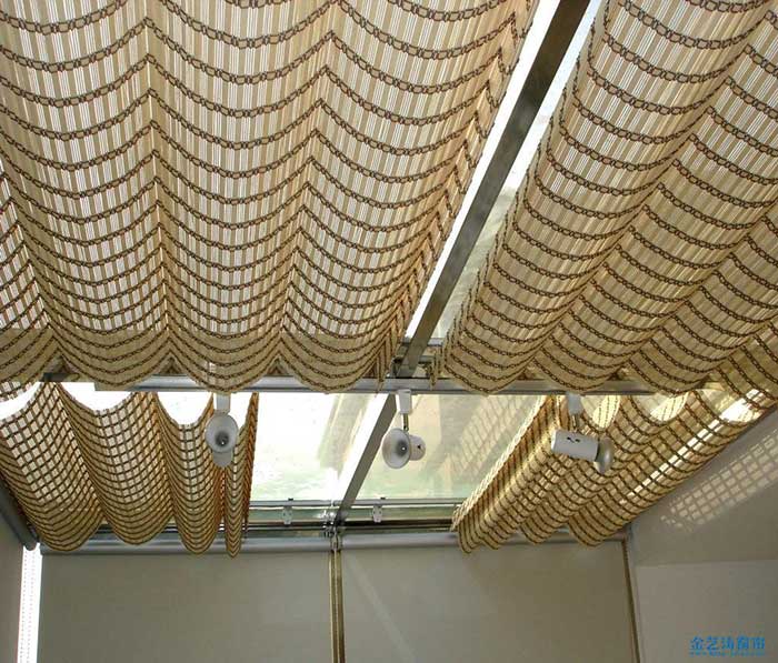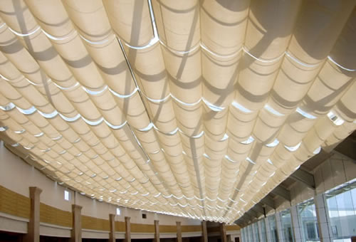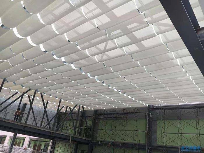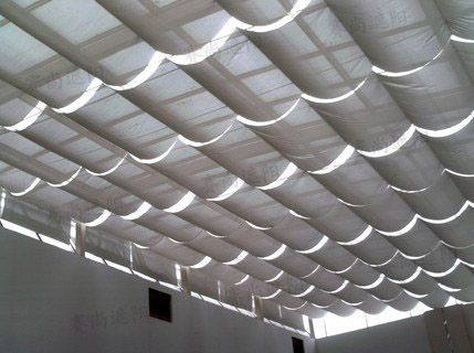 FCS天棚簾系統被打開時,遮陽面料呈波浪狀。